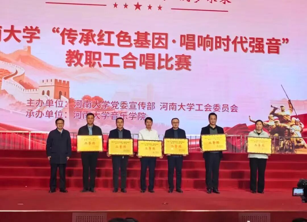 12月6日,由河南大学党委宣传部、河南大学工会委员会主办,河南大学音乐学院承办的“传承红色基因·唱响时代强音”教职工合唱比赛在金明校区图书馆报告厅举行。我院凭借合唱曲目《祖国不会忘记》荣获全校二等奖。
