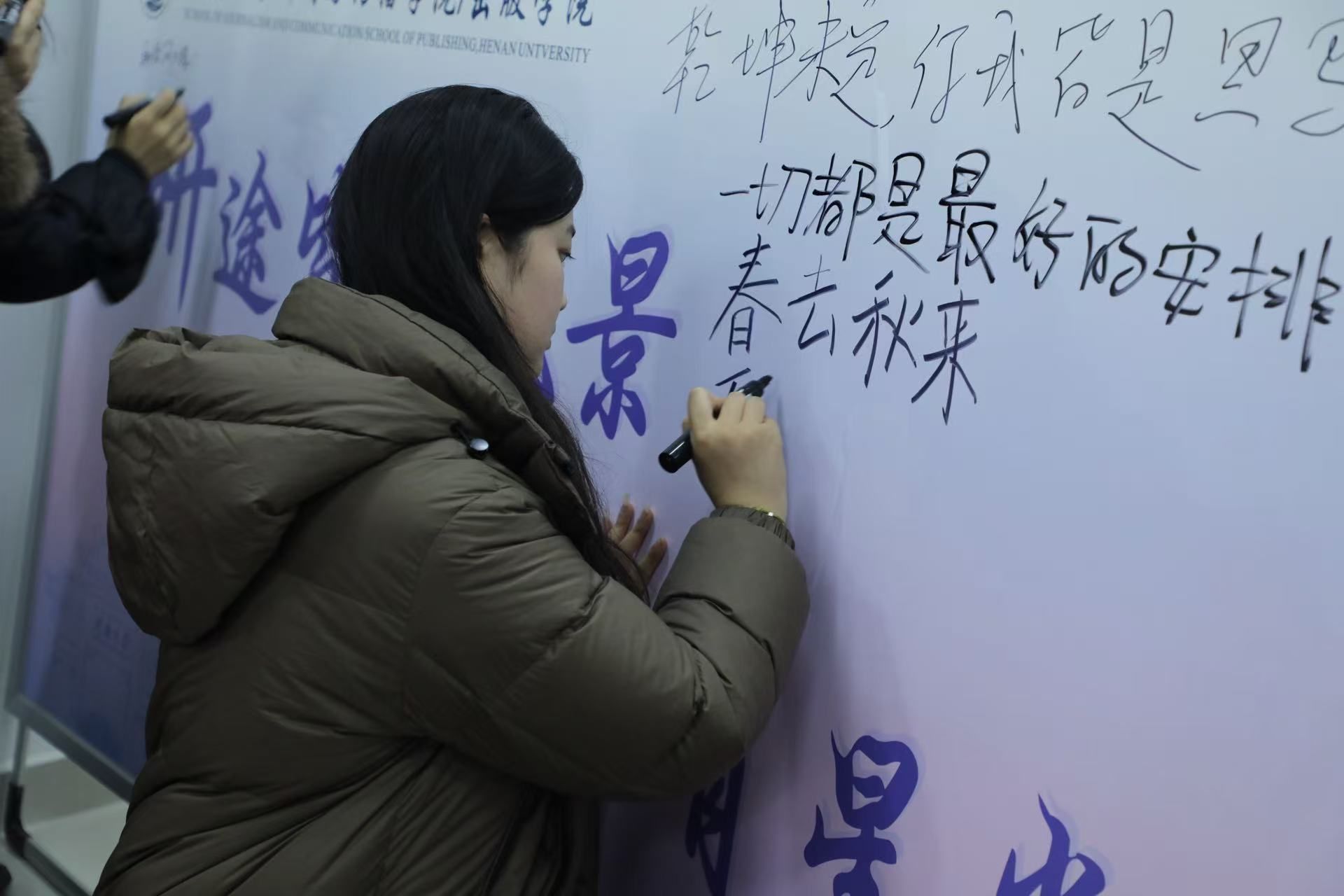 活动尾声,师生共同提笔写下鼓励话语,彼此加油鼓劲。老师们向考研学子发放“考研送温暖”心意礼包,传递学院的真切关怀与美好祝愿。