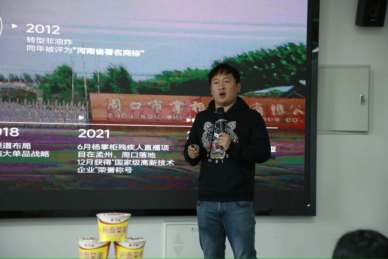 首先,贺磊超为同学们介绍了杨掌柜的企业文化与成长脉络,并重点分享了其“天网+人网+地网”三网协同的经营体系:天网借助新媒体渠道与数字化工具实现全域触达;“人网”依靠用户口碑与KOL合作,建立情感联结;地网则深入线下商超、校园商店等渠道,搭建起立体化的全渠道增长路径。这一清晰生动的解读,也为同学们理解企业实际运营提供了具体参照。