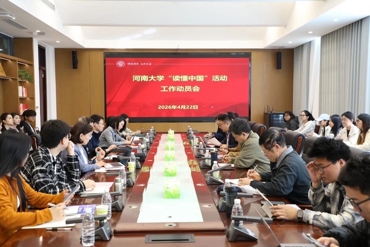 4月22日,河南大学“读懂中国”活动工作动员会在友兰学堂北楼C303室召开。校关工委副主任许俊峰、副秘书长武业伟,新闻与传播学院关工委副主任、原党委书记王文科,新闻与传播学院、文学院教师代表及学生代表参加会议。