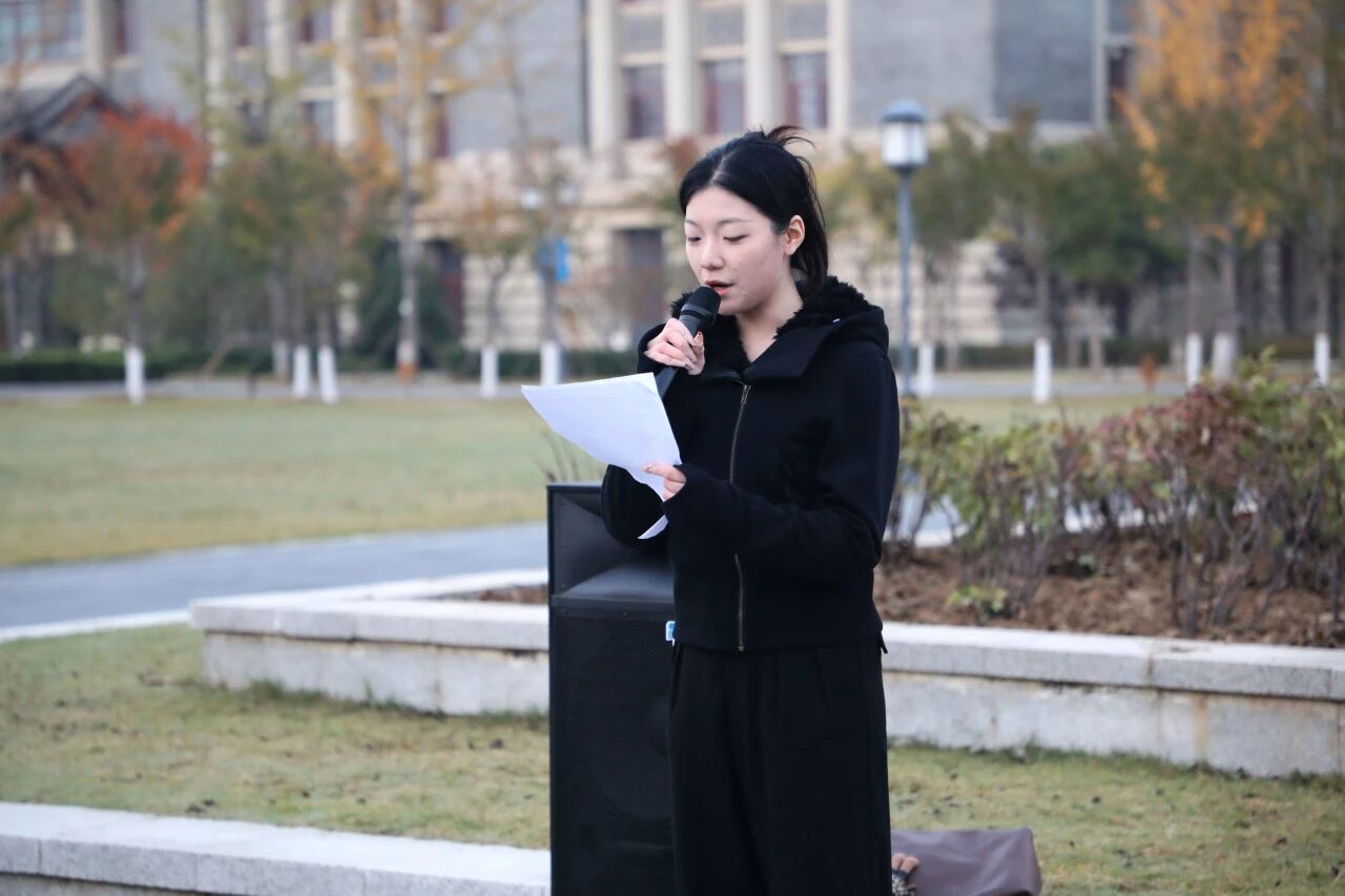 在“国旗下的演讲”环节,2023级网络与新媒体专业本科生苏攀以《锚定十五五蓝图:以新传之能兴校,以青春之力报国》为题,结合专业实践,生动阐述新时代传媒人用镜头记录时代、以文字传递力量的使命与担当。
