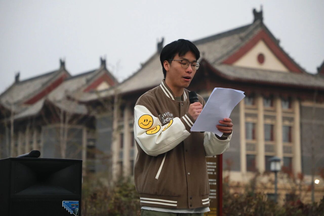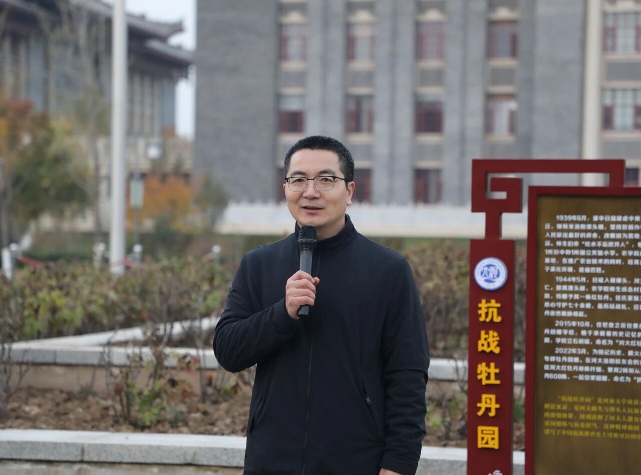 乔石豪以“国旗飘扬、精神传承”为主线,为师生讲授了一堂沉浸式“大思政课”。他首先回溯五星红旗的诞生历程,强调每一次升旗都是一次精神洗礼,激励师生要把对国旗的崇高敬意转化为对国家忠诚、为人民服务的实际行动。随后,他结合河南大学校徽沿革与校训传承,阐释学校自抗战时期“敌前办学”至新时代国家“双一流”、河南“双航母”建设进程中一脉相承的精神内核,强调河大始终与民族复兴同向同行。