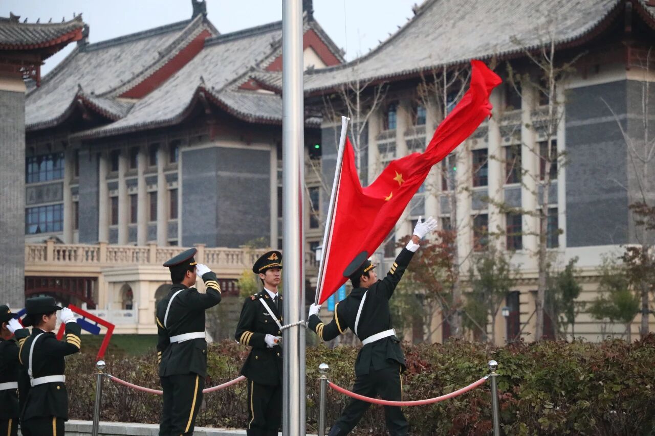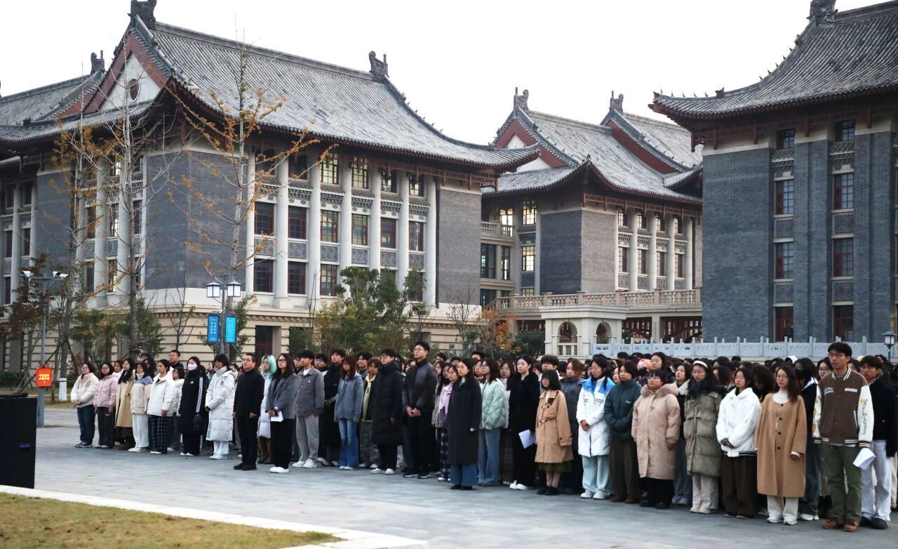 11月3日,我院在郑州龙子湖校区九章学堂中楼西侧庄严举行升国旗主题教育活动。学院党委书记乔石豪、各年级辅导员及全体在校生共同参与。活动由院团委书记李雨盈主持。