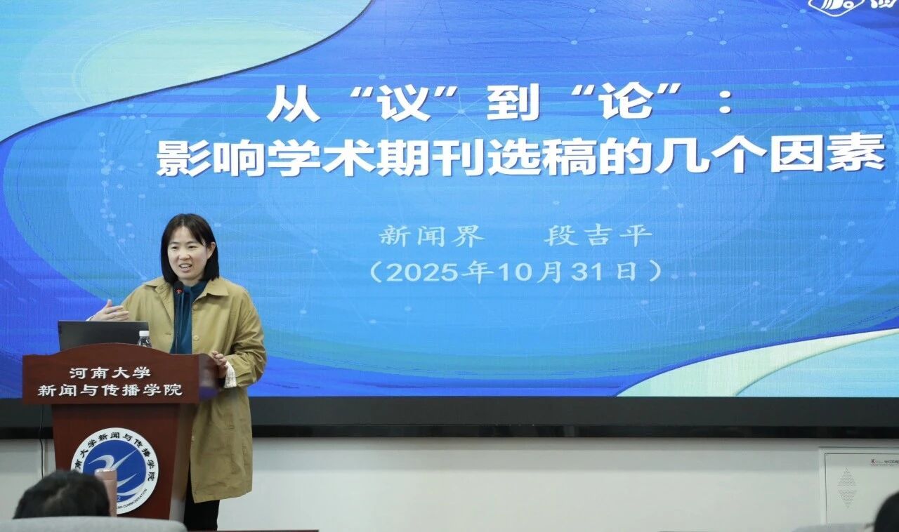10月31日下午,明德·新传讲坛(第262期)在友兰学堂北楼C206室举行。本次讲座特邀CSSCI期刊《新闻界》总编辑、四川日报报业集团传媒研究中心主任段吉平担任主讲嘉宾,以“学术期刊论文写作交流”为主题,为我院师生带来一场兼具启发性与实用性的学术分享。讲座由王鹏飞院长主持。
