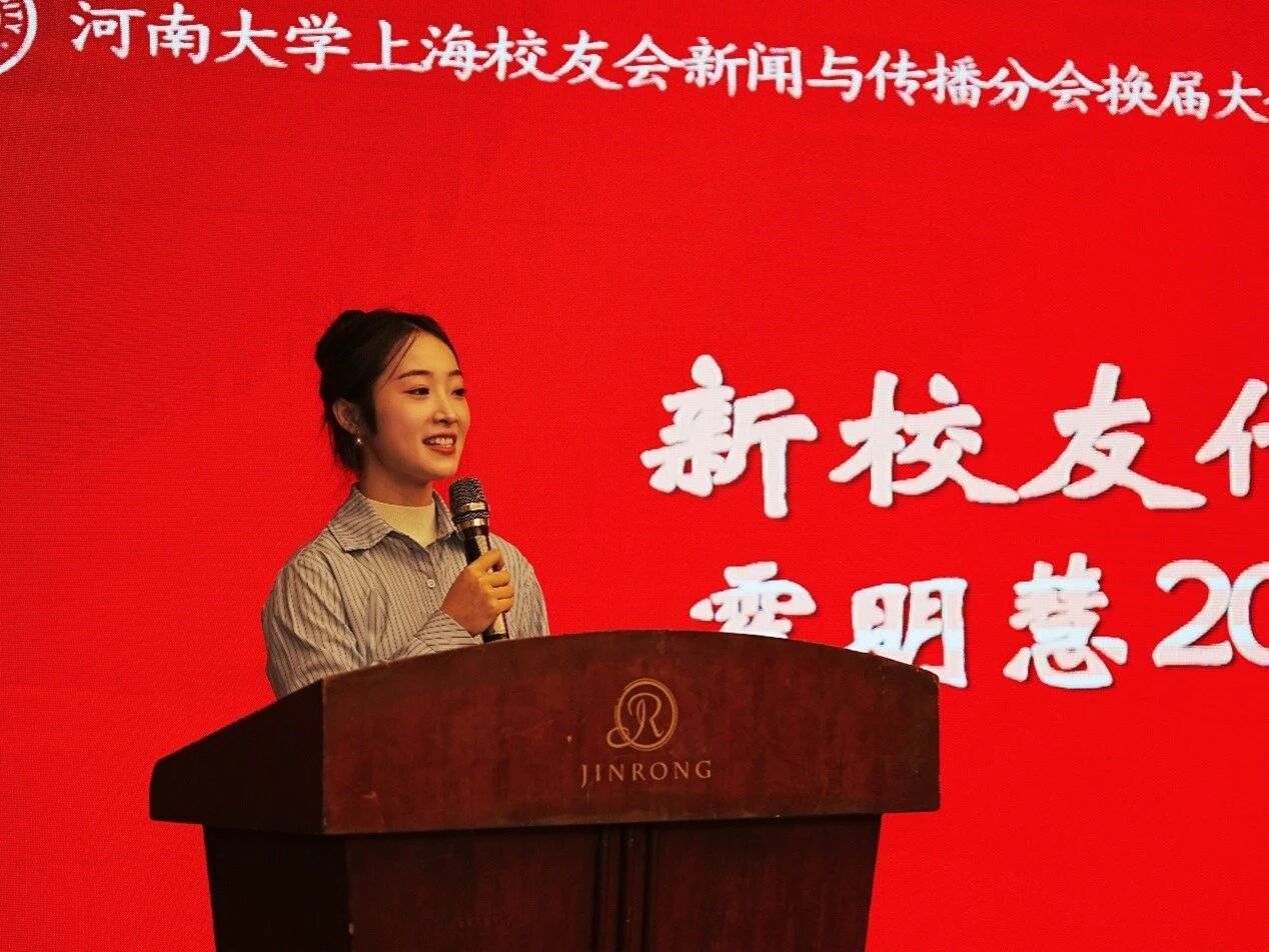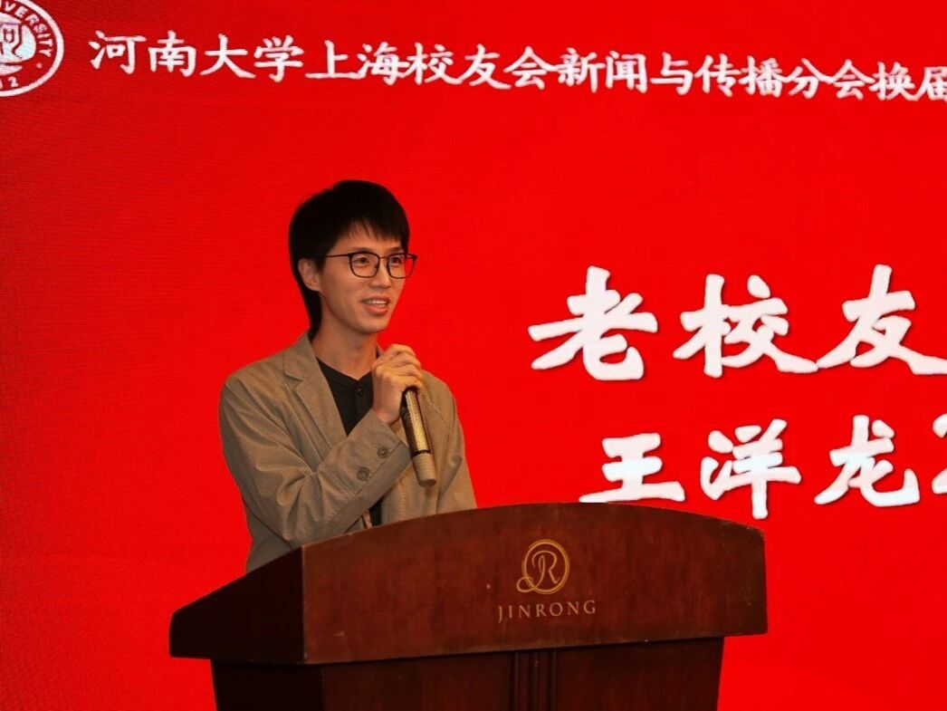 作为校友代表,河南大学新传院2011级校友王洋龙、2021级校友霍明慧分别进行了发言,他们回顾了自己在河南大学的求学时光,以及在上海工作、生活取得的成绩。