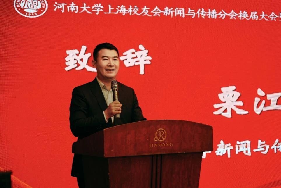 栗江豪代表河南大学新传院领导对新传分会上届成员的工作表示了感谢,并对新一届当选理事表达了祝贺。同时,他向与会校友们介绍了母校和学院近年来的发展情况。“当前,学院正处于迈向更高目标的关键时期,我们比任何时候都更需要汇聚广大校友的智慧和力量。衷心希望上海校友会以及每一位在沪校友能够一如既往情系母校、关心母校、常回家看看,为学院的学科建设、人才培养、校企合作等多提宝贵意见建议,多搭合作之桥,共同开创河大新闻与传播学院更加辉煌灿烂的明天。”栗江豪说。