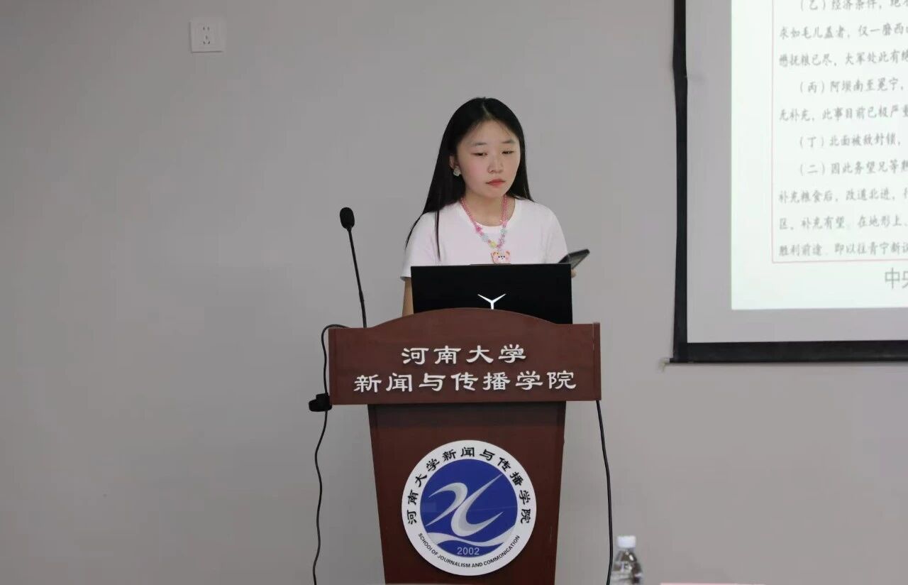 活动现场,三位研究生依次进行书目分享。李依霖以《北上:党中央与张国焘斗争始末》为基础,回顾了1935年红军长征期间党中央与张国焘在战略方针上的分歧与斗争,阐述了这段历史对党的未来发展所产生的深远影响。