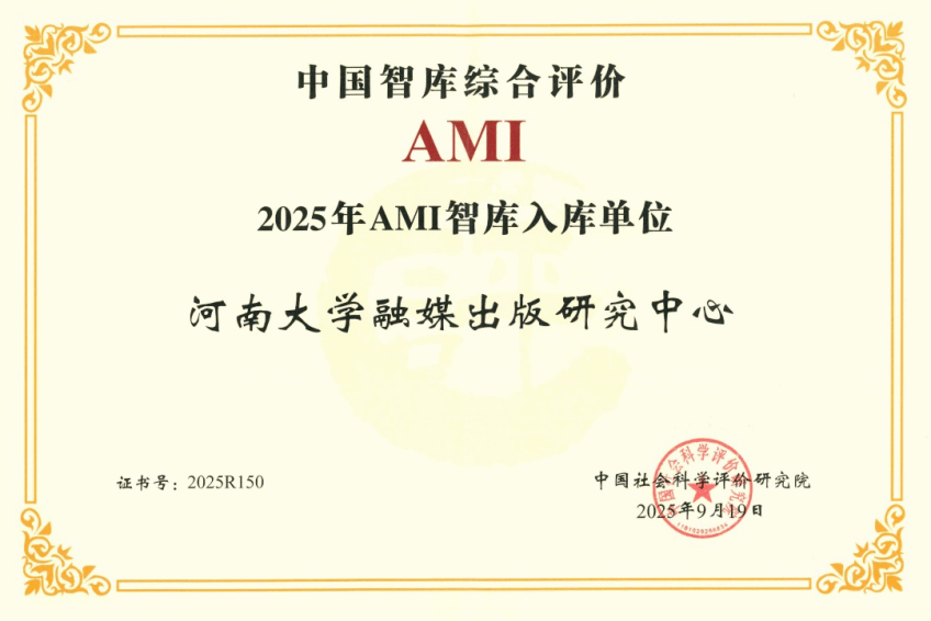 近日,由中国社会科学评价研究院主办、中国社会科学评价研究院机构与智库评价研究室承办的第八届中国智库建设与评价高峰论坛在北京召开,会上公布了中国智库综合评价研究项目(2025)评审结果,河南大学融媒出版研究中心成功入选2025年AMI智库入库单位。