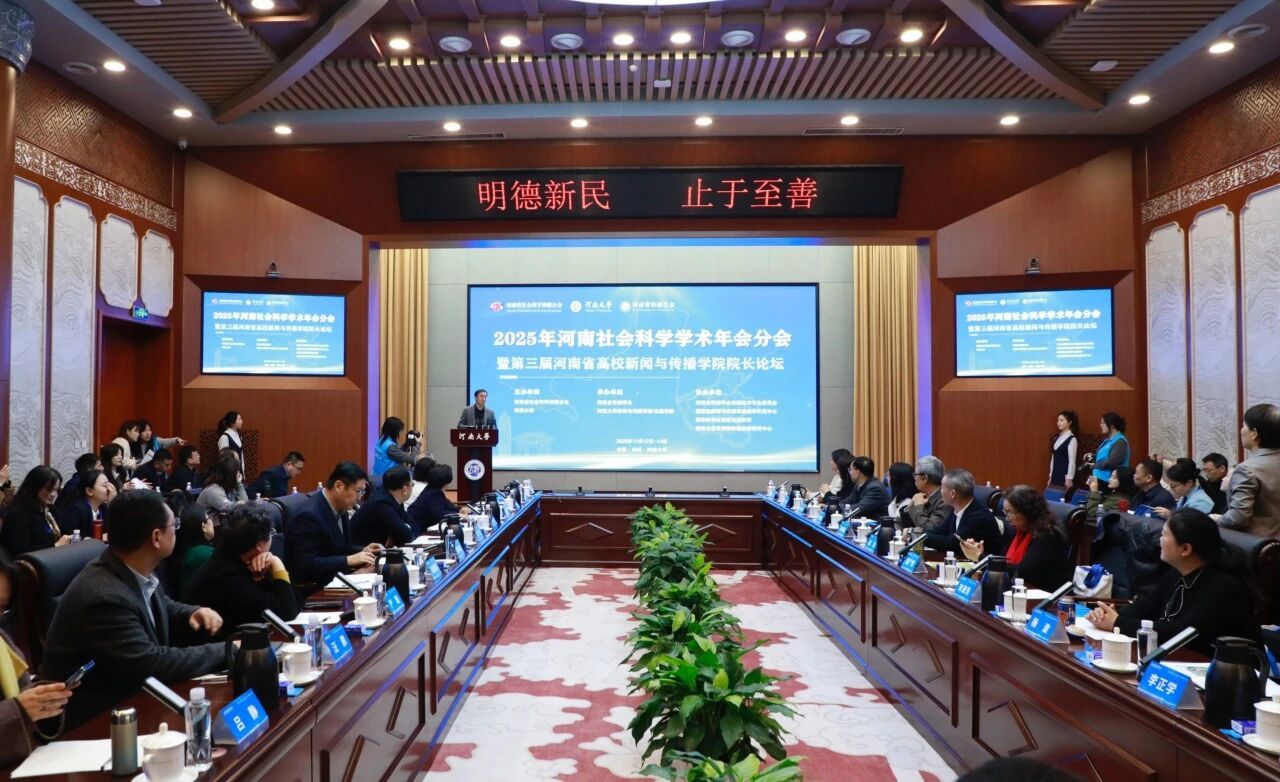11月13日,由河南省社科联、河南大学主办,河南省传播学会、河南大学新闻与传播学院/出版学院承办的2025年河南社会科学学术年会分会场活动暨第三届河南省高校新闻与传播学院院长论坛在郑州龙子湖校区召开。本次会议以“人机共创·智慧传播:科技创新赋能新闻传播教育高质量发展”为主题,汇聚省内外高校新闻与传播学院院长、专家学者及业界代表,共同探讨智媒时代新闻传播教育的转型路径与发展方略。河南省社科联党组成员、副主席赵勇,校党委副书记杨萌芽出席会议并致辞。