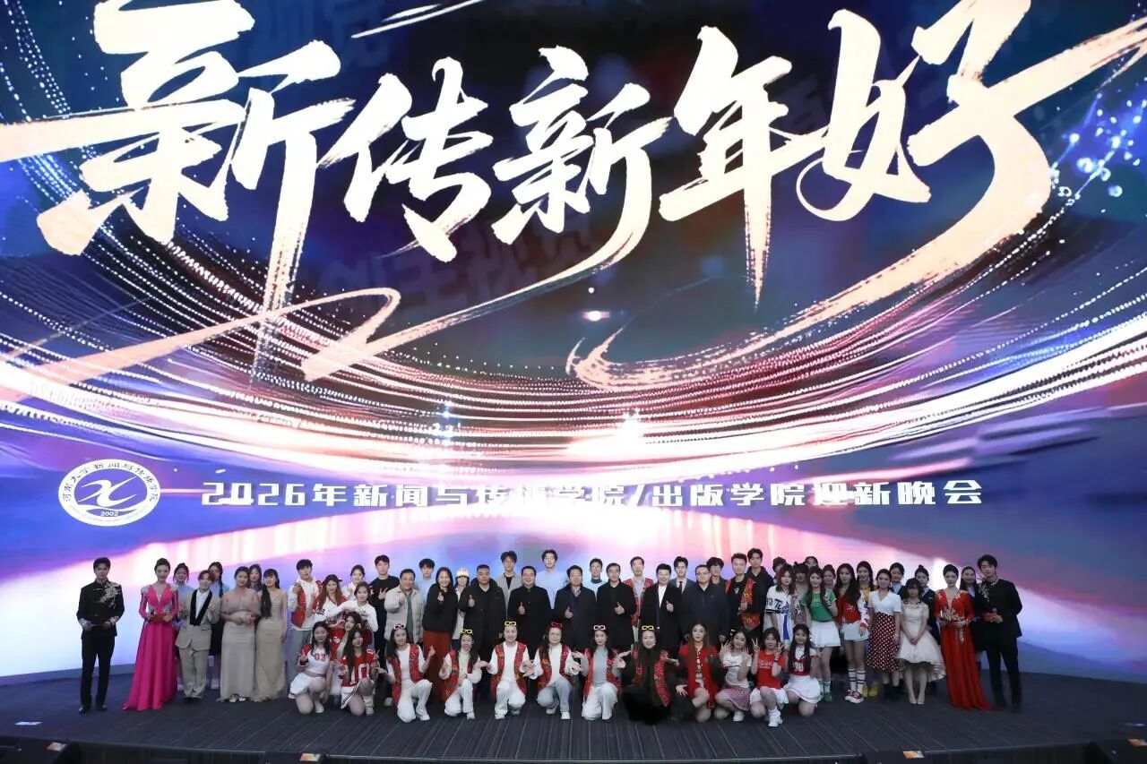 策马追光,新声绽放。12月28日,河南大学新闻与传播/出版学院2026年“新传新年好”元旦暨迎新晚会,在郑州龙子湖数字化转型创新展示中心报告厅隆重举行。河南大学研究生院副院长陈会亮,河南大学巡察办副处级巡察专员唐胜,院党委书记乔石豪,院长王鹏飞,副院长高红波,2009级校友、河南广播电视台王婷婷与学院师生们欢聚一堂,共迎新年。