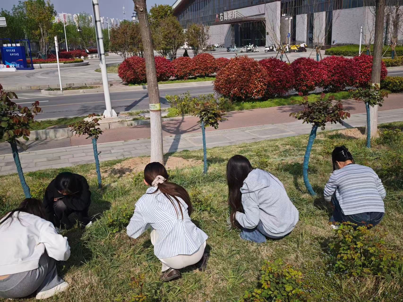 本次实践活动以“美化校园环境,劳动砥砺心智”为主题,在龙子湖校区综管办的指导下,分为四课时有序开展。学生分批次在右岸餐厅南广场集合,随后工作人员完成签到考勤、安全规范讲解及工具分发。绿化工作人员对各小组进行现场技术指导,并划分劳动区域。劳动过程中,同学们分组前往友兰楼周边、樱花大道等草坪区域,戴好手套俯身拔除杂草,组内分工明确、组间配合顺畅,在绿化工作人员的协调下,高效完成了各区域杂草清理及现场清理工作。活动还设置了小组互评环节,从劳动态度、协作配合、工作效率、区域整洁度四项指标进行交叉打分,成绩将作为劳动教育课平时成绩的参考依据。