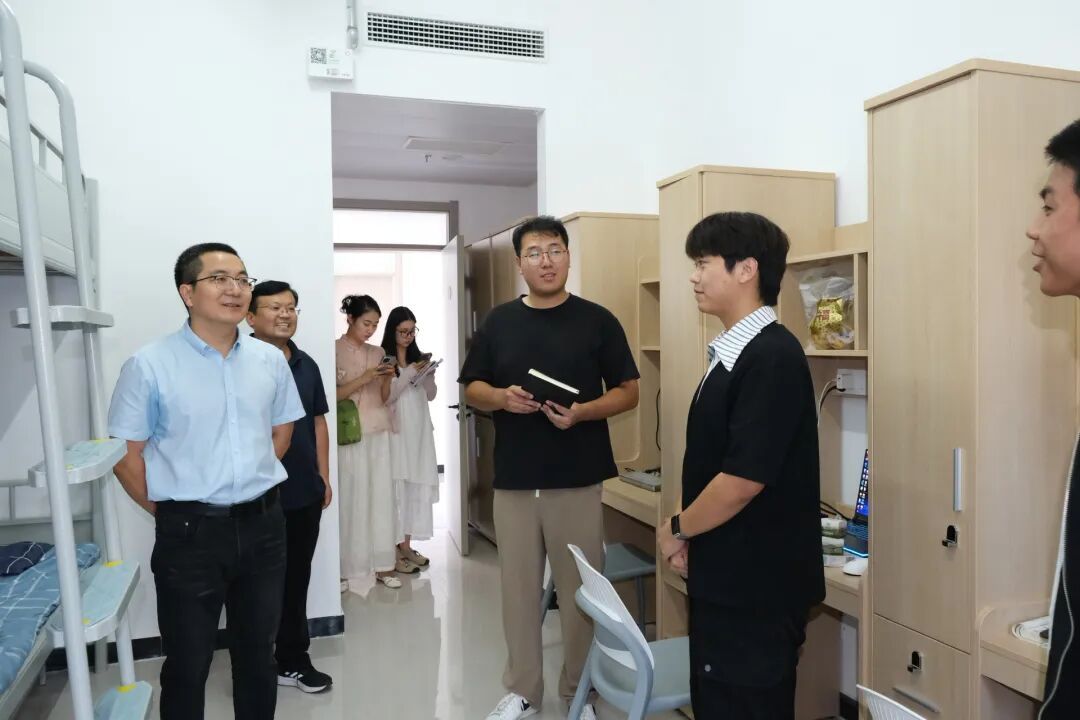 学院领导与教师团队也时刻关注着迎新动态,在报到点指导各项工作,并深入寝室了解新生入住情况,勉励同学们珍惜时光、勇敢逐梦。