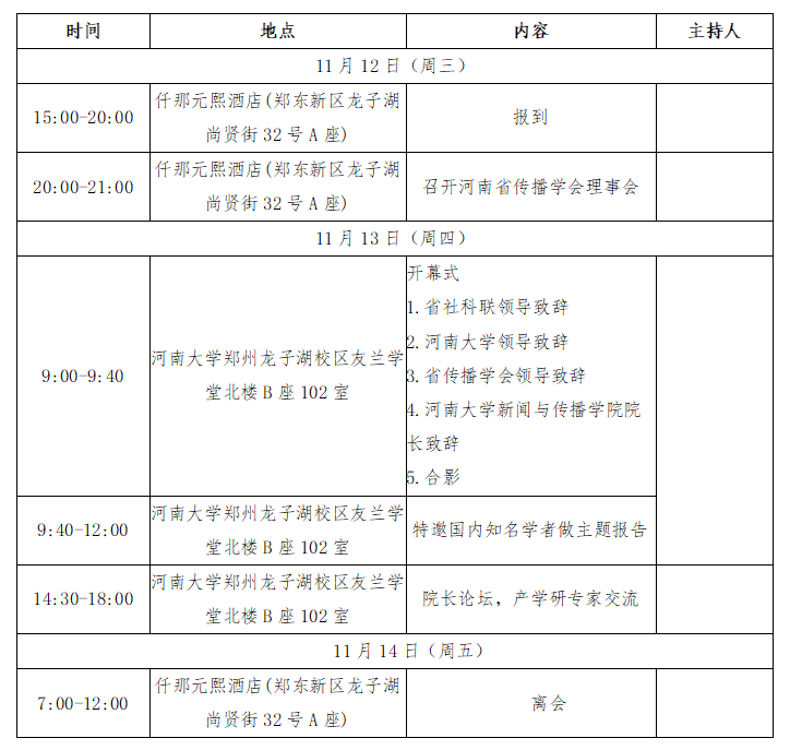 2025年河南社会科学学术年会分会暨第三届河南省高校新闻与传播学院院长论坛会议日程