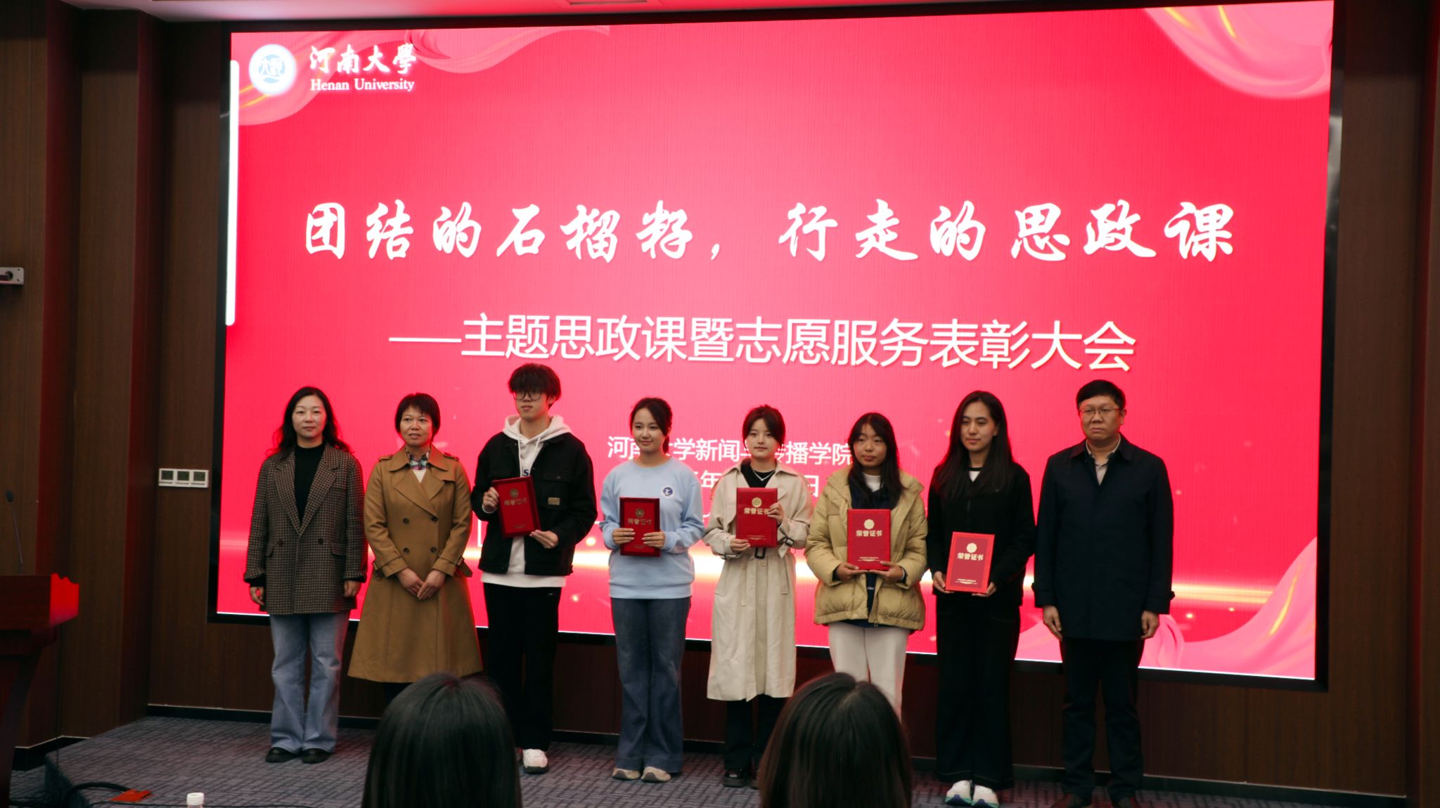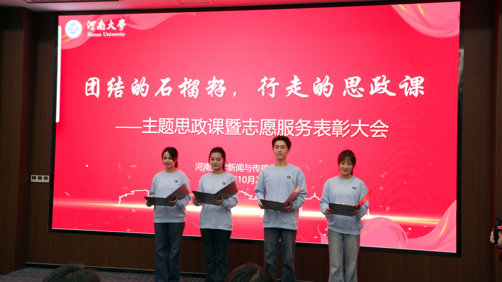为深入学习贯彻习近平总书记对学校思政课建设的重要指示精神,全面落实立德树人根本任务,推进志愿服务工作走深走实,10月23日,新闻与传播学院在郑州龙子湖校区友兰学堂南楼B座105室举行“团结的石榴籽,行走的思政课”——主题思政课暨志愿服务表彰大会。校新闻中心副主任王文君,校党委统战部副部长黄鑫、贾银兰,校课程中心副主任任凤竹,校学生处副处长李平,校团委副书记郭际平,院党委书记乔石豪,副院长高红波、栗江豪等出席会议。“石榴籽计划”贵州行志愿服务教师、学院第八期青马班学员、各年级学生代表参加会议。会议由学院教师练书锋主持。