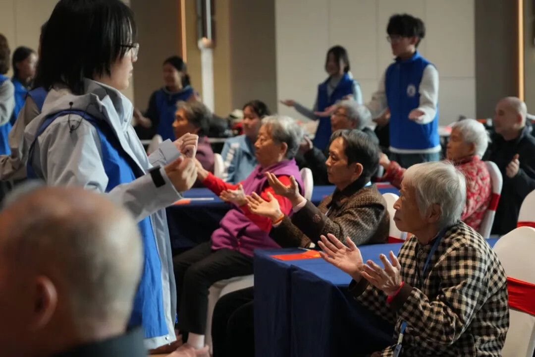 游戏环节,志愿者精心准备了《歌曲猜猜猜》《异口同声》两大互动游戏,老人们全神贯注、积极参与。一首首经典红歌接连响起,熟悉的旋律不仅唤起了美好回忆,更帮助老人们活跃思维、锻炼反应能力。志愿者与老人们在欢乐互动中拉近距离,同学们也收获了成长启迪,让关爱在趣味氛围中持续传递。