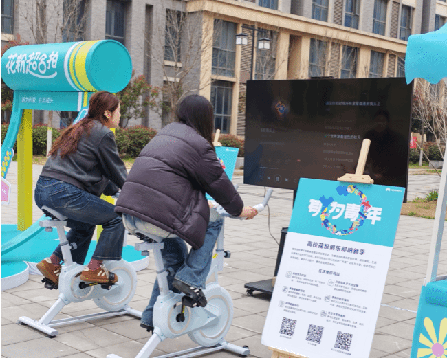 此次活动设置了多个互动区域,涵盖知识科普、运动体验等内容,为同学们带来丰富多元的心理健康体验。在心理健康科普区域,展板通过暖心的图画与实用的知识,为同学们送上缓解学习焦虑、调节压力的“心理锦囊”,引导大家关注心理健康,以积极的心态拥抱校园生活。此外,本次活动还设置了“运动体验”小游戏,在志愿者的协助下,同学们佩戴智能手表,踏上动感单车,将无形的心理压力转化为可感的能量释放,在挥洒汗水的同时,为焦躁的情绪按下“重启键”。