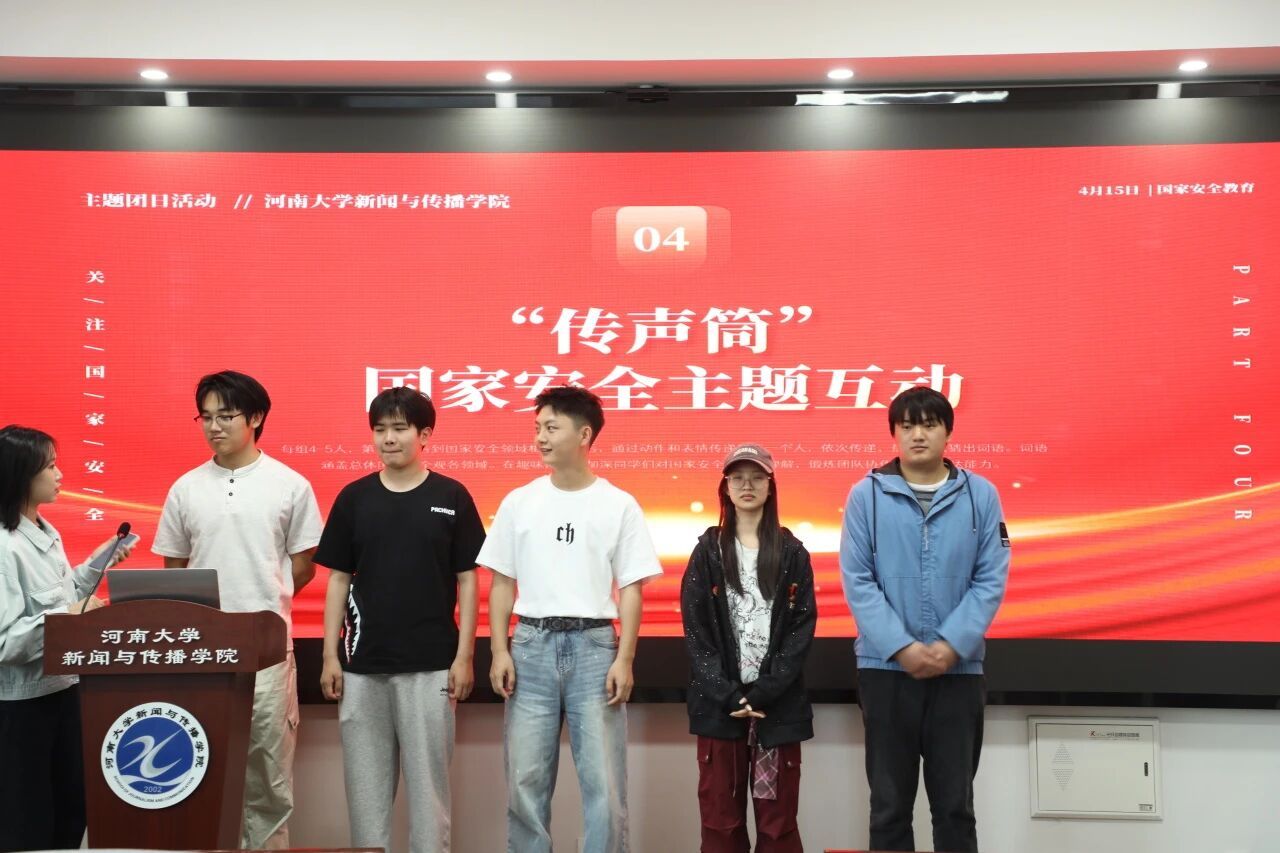 讨论结束后,主持人带领在场同学开展“传声筒”互动游戏,在轻松有趣的氛围中熟悉安全术语、掌握安全知识,深化了对国家安全内涵的理解。