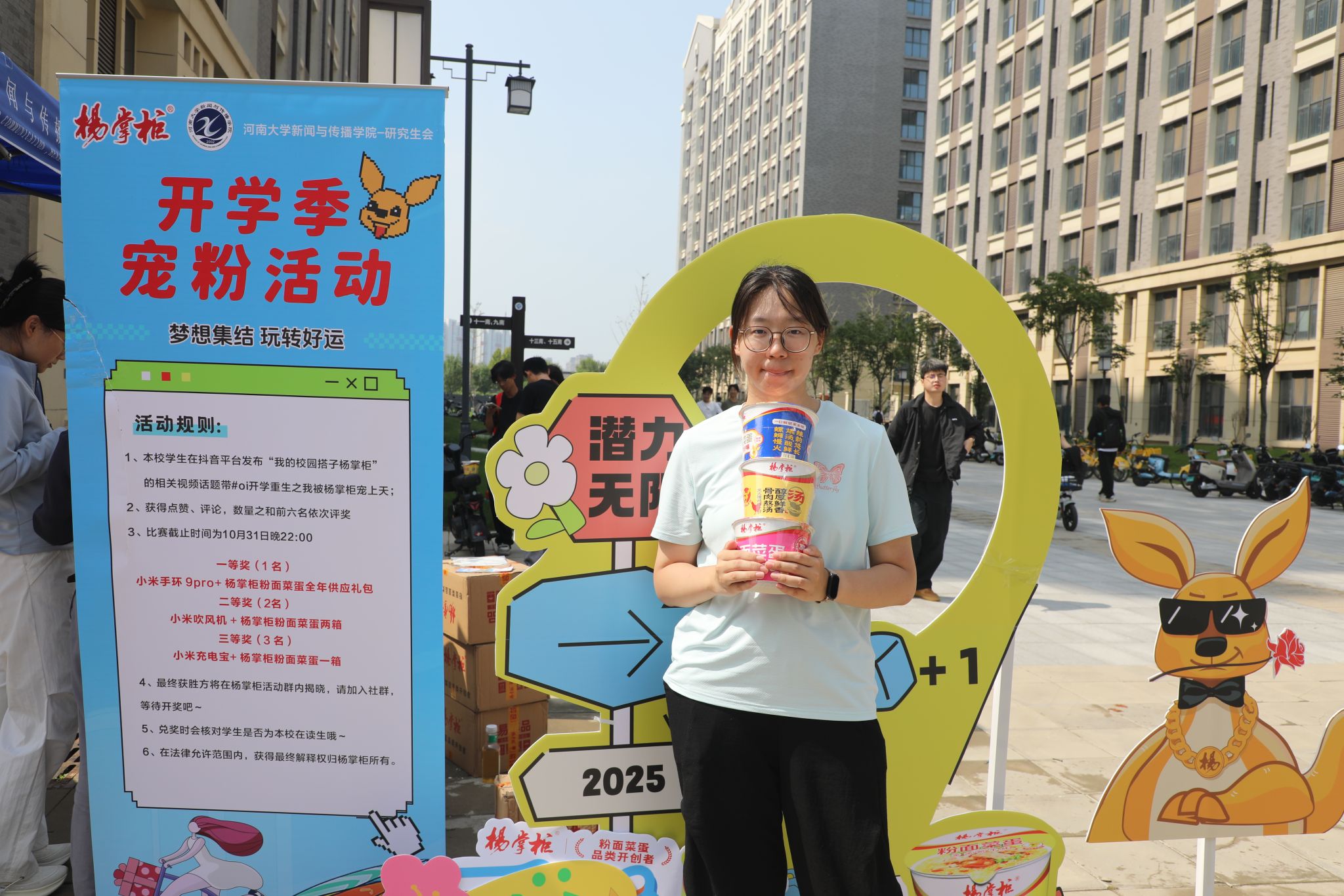 为进一步丰富校园文化生活,创造更多有趣的互动交流机会,我院研究生会联合杨掌柜举办了以“校园搭子”为主题的宣传活动。活动于9月29日上午在郑州龙子湖校区宿舍园区顺利开展,吸引了众多同学热情参与,大家一起玩游戏、赢奖品,展现青春风采!