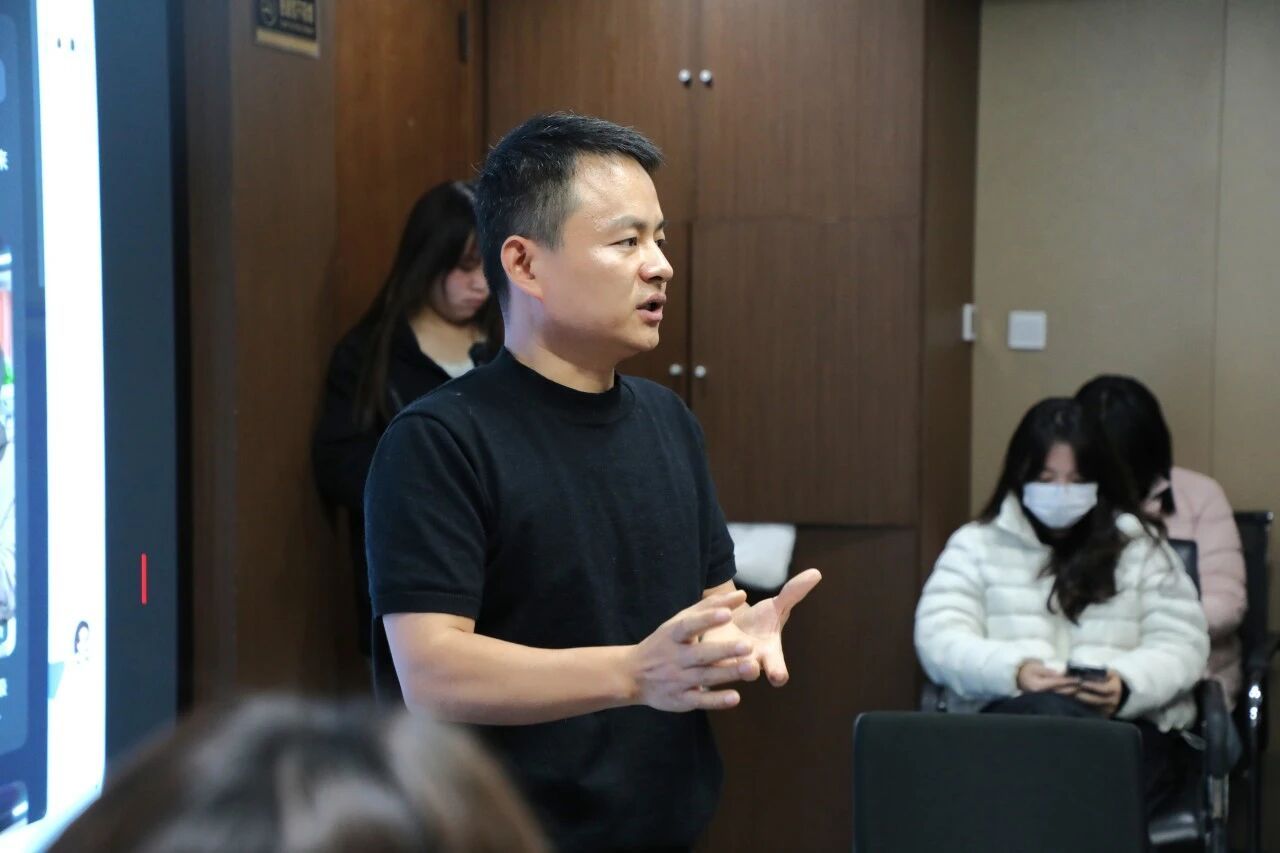 在分享环节,公司培训导师王俊超系统阐述了短视频行业的崛起动因、商业化机遇及其对传统商业逻辑的重塑。他指出,短视频账号运营存在盲目追热点、忽视赛道垂直性等常见误区,应遵循“赛道>形式>选题>内容”的黄金逻辑,“先定赛道再做内容”。