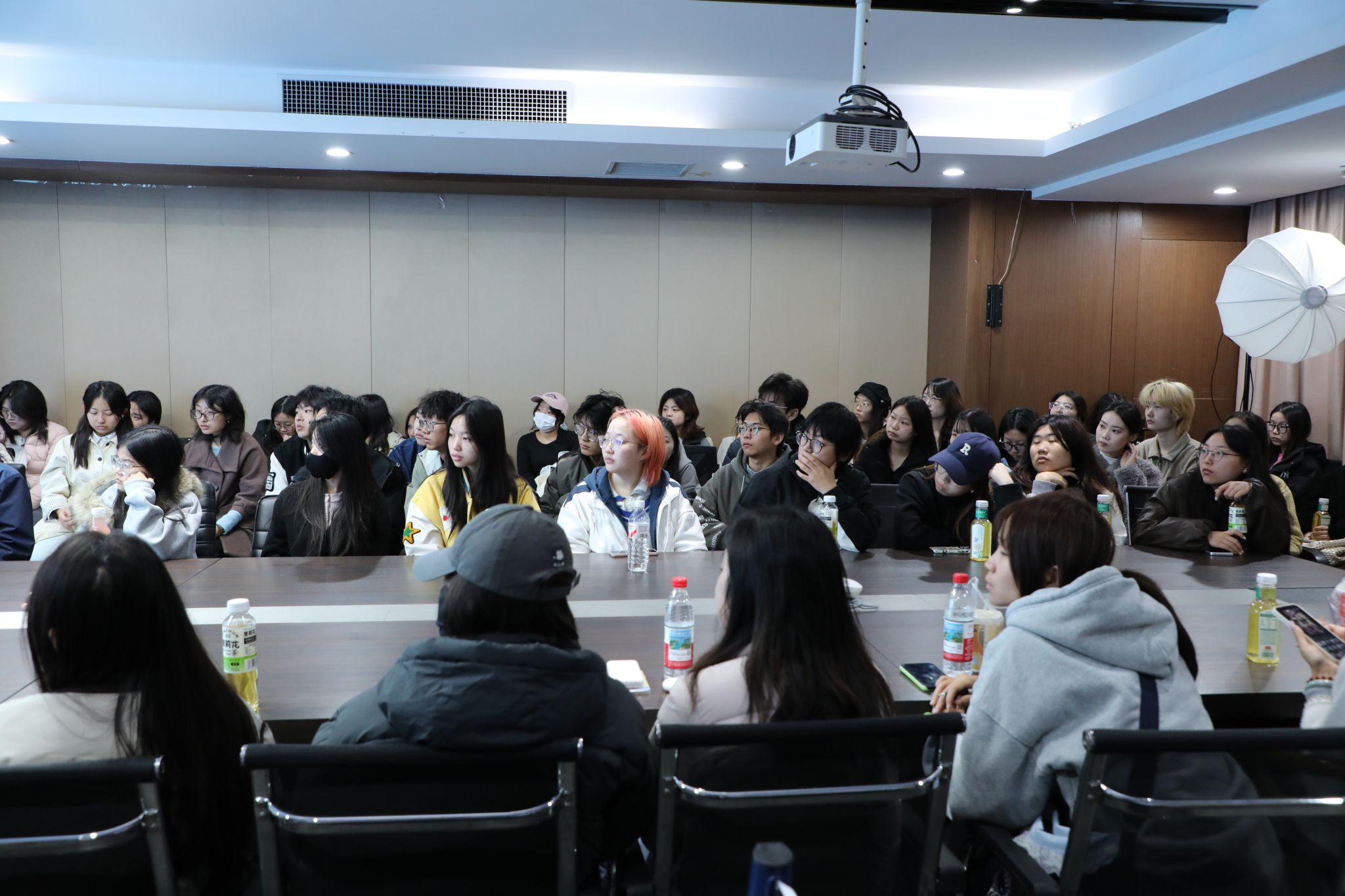 瓜保熟短剧公司总经理门申龙向学院师生介绍了企业的发展历程、业务布局及重点账号情况,帮助同学们快速建立起对短视频行业的整体认知。