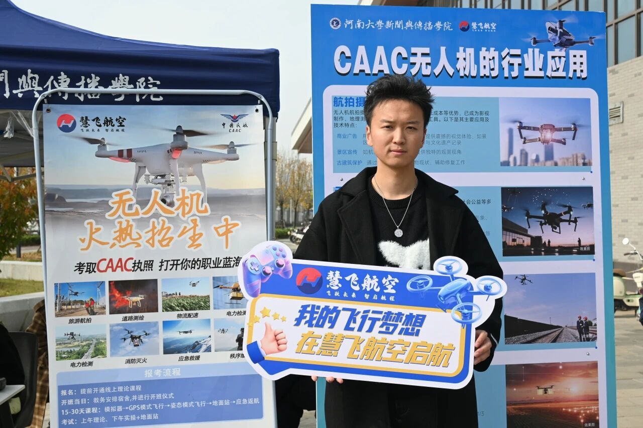 11月11日,新闻与传播学院学生会携手慧飞航空,在郑州龙子湖校区右岸餐厅南门举办“天空之眼:无人机赋能现代传媒”科普互动日活动。活动以趣味互动与知识普及为核心,吸引了众多同学参与,让无人机这一前沿科技以更生动的形式融入了校园生活。