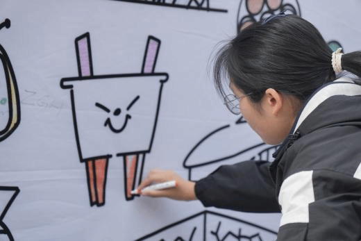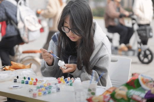本次活动以“传承非遗文化,引领国潮新风”为核心宗旨,集文化体验与趣味互动于一体,设有脸谱绘制、剪纸、石膏涂鸦等非遗手作坊,以及飞镖、毽子接力等互动游戏。同学们在轻松愉快的氛围中近距离感受非遗魅力,亲手体验传统技艺,加深了对“国潮”文化的理解与认同。